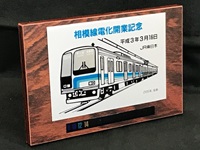 【記念楯】 「相模線電化開業」 平成3年3月16日/JR東日本 本体:木製 サイズ:18×12p 温度計(液晶フィルム)付 未使用 |