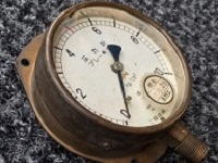 【解体部品】 「ブレーキ管圧力計」 検査/昭和42.8.28/長野工 直径:10cm/三輪精機KK製 裏面にペンキ付着 状態 優 |