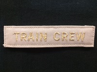 【職務章】 「TRAIN CREW」 JR東海 ベージュ/布製/2×9p 文字刺繍 裏:マジックテープ 状態 優 |