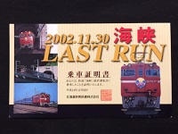 【乗車証明書】 「海峡/LAST RUN」 2002.11.30 JR北海道 10×17p 状態 優 |
