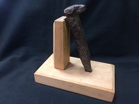 【鉄道部品】 「犬釘」 原名:ドッグスタイッチ(英国製) 明治9年に京都-大阪間に 平底レールが施設された時から使用 長さ:14p/錆止め処理済 木製スタンド付属 状態 優 |