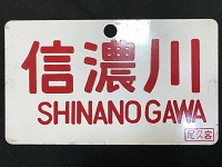 【愛称板】 「信濃川 □尾久客/ 佐渡 □尾久客」 表:信濃川 □尾久客 裏:佐渡 □尾久客 アルミ製 塗板 縦14㎝×横24cm 塗装剝れ・汚れ若干有 状態 優 |