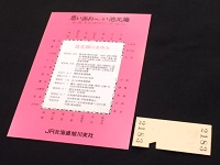 【乗車証明書】 「湧網線さようなら乗車記念」 昭和62年3月19日/国鉄旭川 サイズ:8.5×42cm/三つ折り 状態 優 |