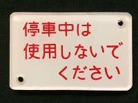 【表示プレート】 「停車中は使用しないでください」 プラ製 サイズ:4×6.3cm 状態 優 |