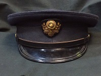 【制帽】 「国鉄一般制帽」 昭和42年度/4号形 頭囲:55p 濃紺から紺グレに変わる過渡期 芯は硬く細いプラ製 タグは裏地に縫付 上部に若干汚れ有 状態 優 |