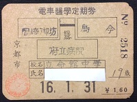 【電車通学定期券】 「岡崎御坊-烏今」 京都市/16.1.1 No.2518 折れ・ヤケ有 状態 良 |