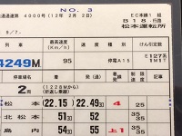 【運転士スタフ】 「大糸線/E127系」 H12.9.7施行 松本運転所/EC本線1組B18行路 4249M:松本→信濃大町 スタフ1枚表のみ 作成・照合印有 ラミネート加工 状態 優 |