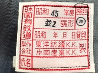 【腕章】 「機関士」 昭和44年10月製作/松坂屋 表面に赤いにじみ有 裏地に「見学」マジック書き・シミ有 状態 良 |