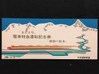 | 【記念券】 「あずさ号電車特急運転記念」 1966.12.12/国鉄 サイズ:5.8×13.5cm 状態 優 |