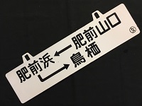 【記念行先板】 「鳥栖←肥前浜←肥前山口」 ホーロー 浮文字 サイズ:18×60cm(吊手部含む) 裏なし ゆがみ有 状態 良 |
