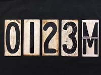【表示板】 「0・1・2・3・M」 アルミ製塗装板/5枚 サイズ:16.5×7.5p 塗装はがれ・傷み有 状態 良 |