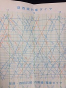 【湖西線列車ダイヤ/ 草津・西明石間(内側線) 電車ダイヤ】 大阪鉄道管理局 昭和61年11月1日改正 0時〜24時 4001 日本海1号 4033M 雷鳥33号等 優等列車番号表記有 一部ヤケ/折有 表のみ/状態優 |