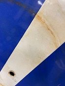 【敦賀方面】 ホーロー紺板 白彫文字 上下使用による欠損有 75×15×0.3p 経年錆/欠/剥有 状態良 |