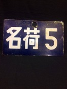 【名荷5/名荷5】 名鉄局管内荷物列車用 ホーロー紺板白浮文字 塗装上塗有 使用による塗装剥、錆、 若干反有 状態優 |