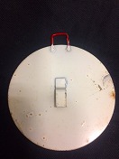 | 【転てつ機部品】 ホーロー板 直径 38p 錆/剥有 使用痕抜群/状態優 |
