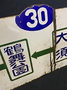 【市電側面取付用】 名古屋市電30系統 堀田〜鶴舞公園〜大須 〜名駅間のサボ 行先両面上部系統表記 30系統ホーロー白板 緑、赤、青浮文字 ホーロー欠錆反有 状態使用痕共に極上 |