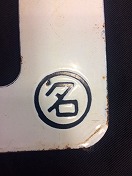 | 【利尻○手】 ホーロー赤帯板赤浮文字 使用による ホーロー錆、汚有 状態優 |