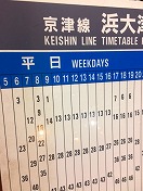 【京津線 浜大津方面 発車時刻表】 プラ板 69.7×99.6×0.2p 5時〜24時 平日/休日 汚有/状態優 |