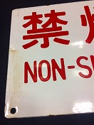 【禁煙車】 ホーロー白板赤浮文字 使用による塗装剥・錆有 状態優 |