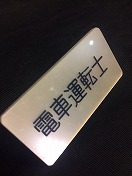【電車運転士】 3×6×0.3p 彫文字 安全ピン・クリップ付 経年汚・擦有 安全ピン・クリップ変形有 状態良 |