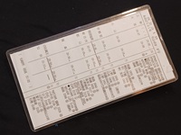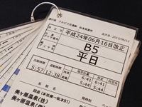 | 【運行表】 「アルピコ交通」 松本営業所 30×11cm 平成24年06月16日改正 仕業・ダイヤ番号G5・編成ダイヤ名土日祝 ラミネート加工紙・10枚リング留/状態 優 |