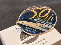 【ピンバッチ】 「東海道新幹線50周年」 本体最大径:3.5×2cm 紙箱入 状態 優 |