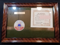 【記念品】 「動力車乗務員 特別無事故記録証」 高槻電車区 昭和58年 10万キロ無事故 額縁サイズ 26×35cm メダル・表彰状セット 個人名記載有/状態 優 |