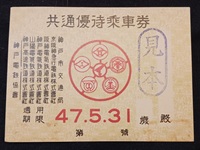 【乗車券】 「祝京都国際文化観光都市建設 京都観光特別乗車券」 京都市交 5.5×10.5cm 京都市電乗合自動車 全線共通50円 通用日:昭和25年10月1日 新聞週間協賛事業 状態 優 |
