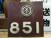 | 【車両部品】 「側車番切抜 社紋・851号車」 阪急 原板原色 鉄板:50cm四方 851号車は昭和24年に建造され当初は751号車を称した。 製造の翌年に851号車へ改番のち昭和57年廃車。 裏面梁有・塗膜状態良好/状態 優 |