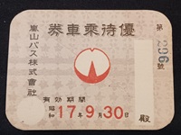 【乗車券】 「バス優待乗車券」 嵐山バス 第206號 有効期間 昭和17年9月30日 氏名空白 裏面注意書 状態 優 |