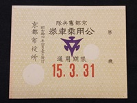 【乗車券】 「京都憲兵隊 公用乗車券」 昭和四年拾月壱日発行 京都市役所 通用期限15.5.31 氏名空欄 「憲兵」は軍隊の警察 歴史を感じる品 折目有/状態 良 |