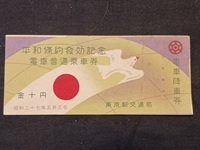 【記念乗車券】 「平和条約発行記念 電車普通乗車券」 都交 昭和27年5月3日 5×12㎝ 裏面白 状態 優 |