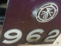 | 【車両部品】 「側車番切抜 社紋・962号車」 阪急 原板原色 鉄板:55cm四方 962号車は昭和12年製造、神戸線の特急運転開始に 合わせて登場した920系に属する。929型と称される3次車の1両。 920系は昭和54年から57年に廃車され一部は救援車に改造された。 塗膜状態良好/状態 優 |