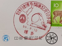 【郵趣封筒】 「新幹線岡山・博多開業記念」 昭和50年3月10日 封筒に開業当日消印 切手展記念押印 表に記念柄たばこチェリー パッケージ貼付 状態 優 |