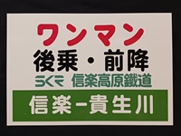 | 【表示板】 「ワンマン 後乗・前降 信楽-貴生川」 信楽高原鉄道 23×34cm アクリル製・印刷板 状態 優 |