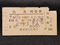 | 【特急券】 「白鳥」 昭和41年7月27日 乗車駅発8時33分 乗車駅京都 下車駅直江津 4号車13番A席 2等800円 〇交京都大丸発行 状態 優 |