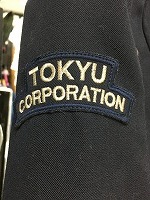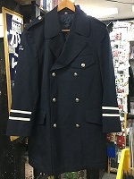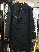 「東急電鉄旧コート」 サイズ/4号 肩幅49/丈86/胸囲110 右肩にワッペン付 両袖に銀線2本入 状態優 . |