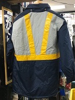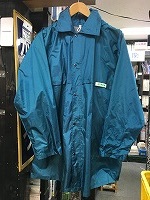 「JR東日本旧」 サイズ/4号/青緑色 肩幅50/丈80/胸囲120 左胸にワッペン付 背中に蛍光線(銀色)付 フード 状態優 |