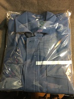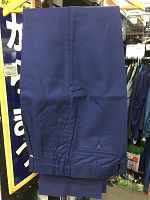 「JR東日本初期型接客 合上下」 色 ライトブルー 上衣 サイズ/Y5 肩幅46/丈72/胸囲100㎝ 左胸と両脇にポケット付 後ろ両脇にタック複数入 仕付け糸付 ズボン サイズ15-5号 WT/85 また下/72㎝ 未使用 |