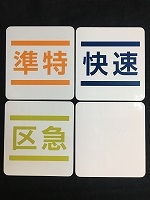 | 「運転士スタフ用」 京王電鉄 1.特急/準特 2.急行/快特 3.普通/区急 4.KEIO LINER/裏無 4枚セット/プラ製 サイズ/6.8x7.3cm 状態優 |