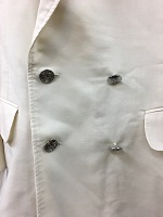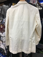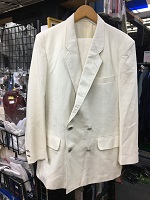 「JR東日本初期型 優等列車夏上下」 色 アイボリーホワイト 株式会社三越 納 上衣 サイズ/4号 肩幅48/丈72/胸囲100㎝ 左胸と両脇にポケット付 ダブルボタン 後ろ両脇にタック複数有 ズボン サイズ/8号 WT/82 また下/78㎝ タグに名前書込み痕有 状態優 |