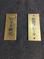 「DD51 運転室 スイッチプレート」 31550-1 耐圧ブレーキ 砲金製/ 黒色彫文字仕上 サイズ/2.5/6/0.2㎝ 上下に固定用穴有 使用による傷等有 31550-2 砂マキ締切 砲金製/ 黒色彫文字仕上 サイズ/2.5/6/0.2㎝ 上下に固定用穴有 使用による傷等有 状態優 |
