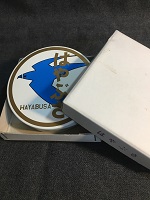 「寝台特急はやぶさ ミニヘッドマーク」 厚紙製箱入 本体/白色塗装金属製/ 印刷文字仕上 サイズ/直径8.8/1.8㎝ 状態優 |