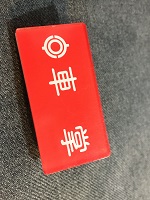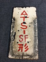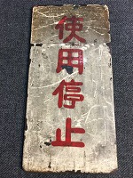 「ATS-SF形/ 使用停止 札」 白色塗装板製/ 赤色手書文字仕上 サイズ/11.5/6㎝ 使用による汚れ、 塗料剥げ、錆、 受け枠痕等有 状態優 |