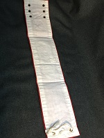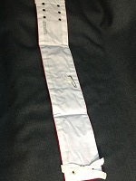「車掌見習」 朱色布製/ 白色印刷文字仕上 サイズ/7.5/34㎝ 中央部上部に安全ピン 1つ有 使用によるシミ汚れ有 状態優 |