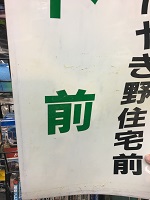「グランド前」 会社不明 田無駅方面・ 次はけやき住宅前 記載有 廃止路線で使用? 白色アクリル版製/ 黒・青・赤・緑色貼付文字 仕上 サイズ/35/120㎝ 使用による汚れ、 テープ痕等有 状態優 |