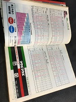 | 「小田急電鉄」 昭和61年3月24日改正 平日・休日表裏記載 4時から翌4時 1分目ダイヤ 新宿-小田原-箱根湯本 新宿-藤沢-片瀬江ノ島 代々木上原-綾瀬 運用記号/所属及び /運行番号/列車番号 及び停車駅/標準勾配/ 区間キロ程/累計キロ程/ 標準発車時刻他記載 表紙サイズ/11x30cm 22折/シミ・若干破有 状態良 |