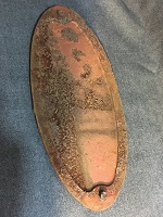 「日本国有鉄道 楕円銘板」 サイズ/10.5/25/1㎝ 固定用ネジ 切断状態で2箇所 固着有/ 全体的に錆、汚れ等有 状態良 |