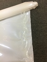 昭和42年9月 株式会社 ?製 白色ビニール コーティング布製/ 黒色印刷文字仕上 サイズ/7.5/41㎝ 左端部分に固定用穴 6つ・ 右端部分に固定用穴 2つ有 紐付 中央部上部に安全ピン 1つ有 状態優 |