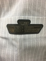「JR東日本初期型」 黒色布製/ 刺繡文字仕上 ロゴマーク刺繍文字 サイズ/4.7/6/1.5㎝ 裏面にネジ有 *ネジ留具は別の物から 流用品 状態良 |